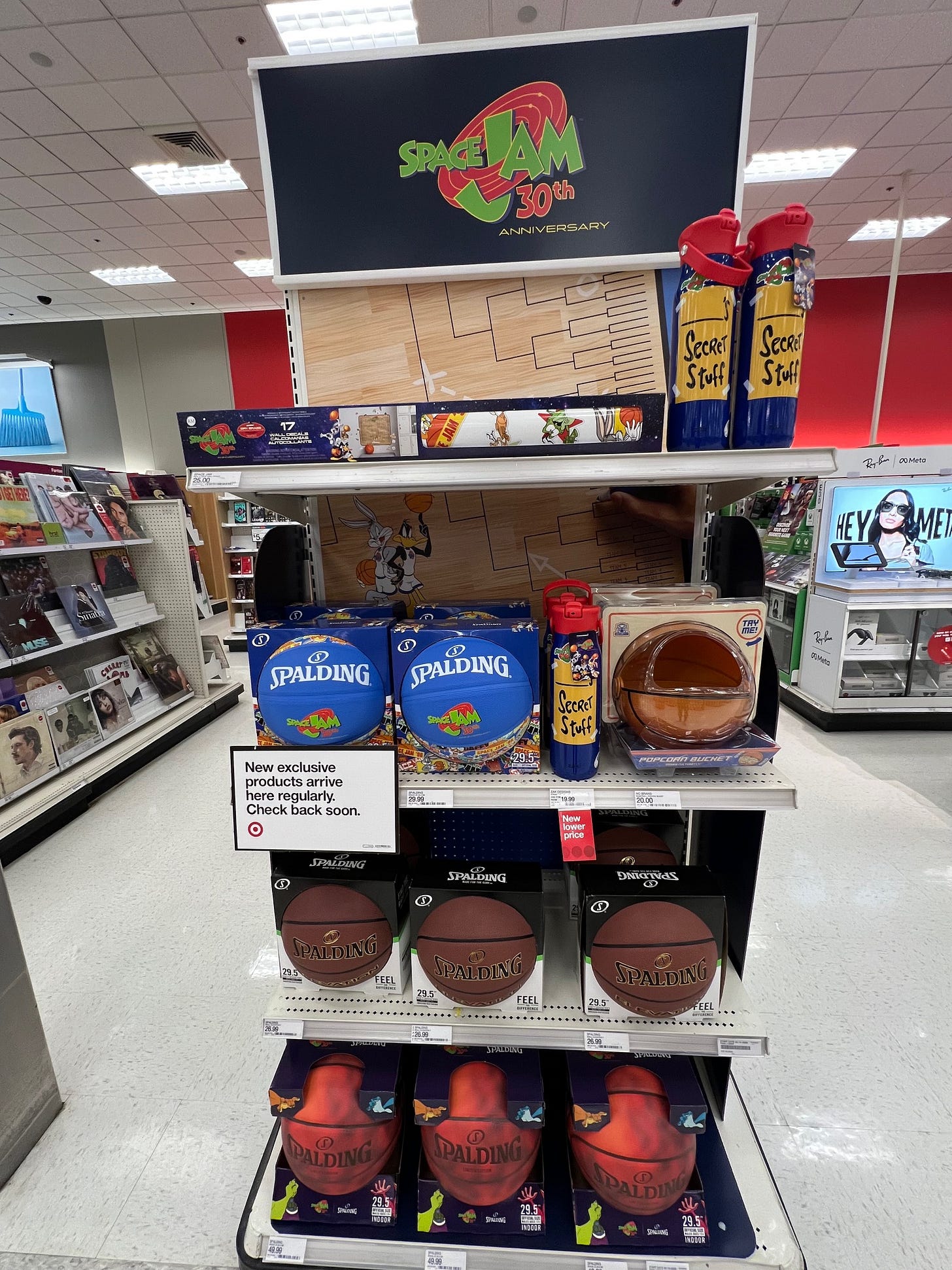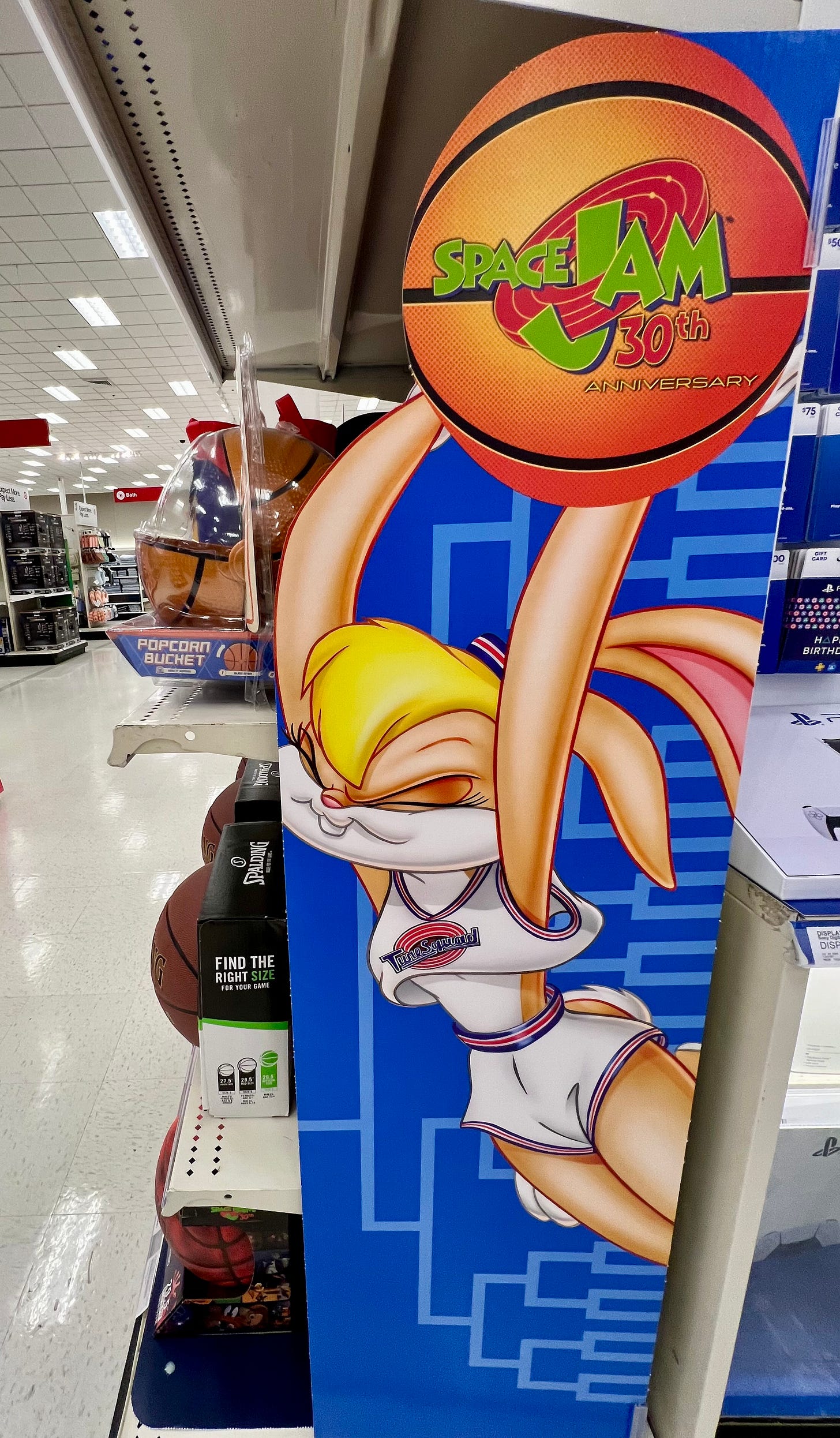 Yesterday at Target, I stopped at an endcap built around the 30th anniversary of Space Jam. Licensed basketballs. “Secret Stuff” bottles. A popcorn bucket. One tight, focused story.